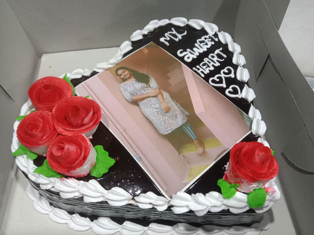 Make your celebration extra special with this Heart Shape Chocolate Truffle Cake with Edible Photo Print, a delicious and personalized cake that brings sweetness and memories together.